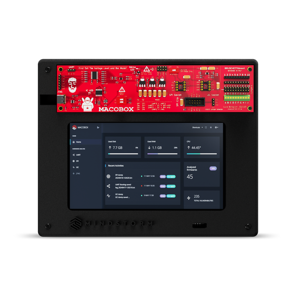 The MACOBOX changes everything: it incorporates the entire hardware penetration testing life-cycle: from connection, firmware extraction - and automated firmware vulnerability analysis. Every step is streamlined and automated - vastly accelerating the onerous steps, allowing penetration testers to create rapid, repeatable workflows with just one tool.