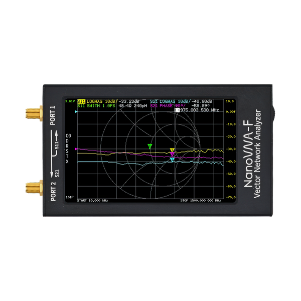 The NanoVNA-F can be used via its touchscreen interface, or mobile and desktop applications for extended functionality and usability.